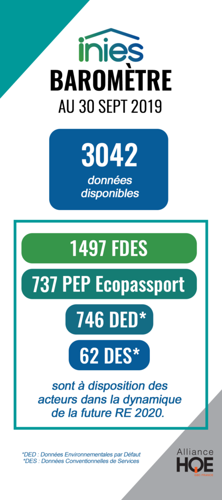 Au 30 septembre, étaient renseignées 1 497 FDES, 737 PEP Ecopassport, 746 données environnementales par défaut et 62 données conventionnelles de services qui sont à disposition des acteurs dans la dynamique de la future RE2020.