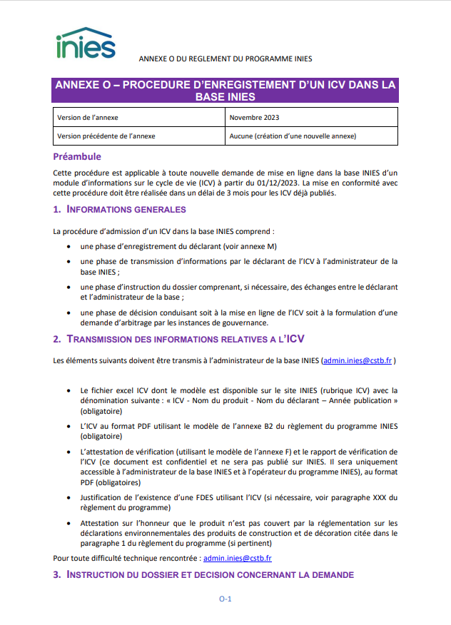 - du règlement du programme INIES Règlement du programme INIES (décembre 2025) – Inies