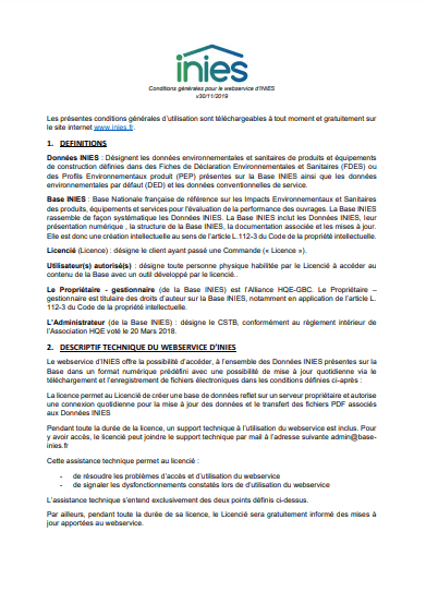 Pour accéder aux données digitalisées et mises à jour régulièrement, il faut demander un accès (payant) au webservice INIES.