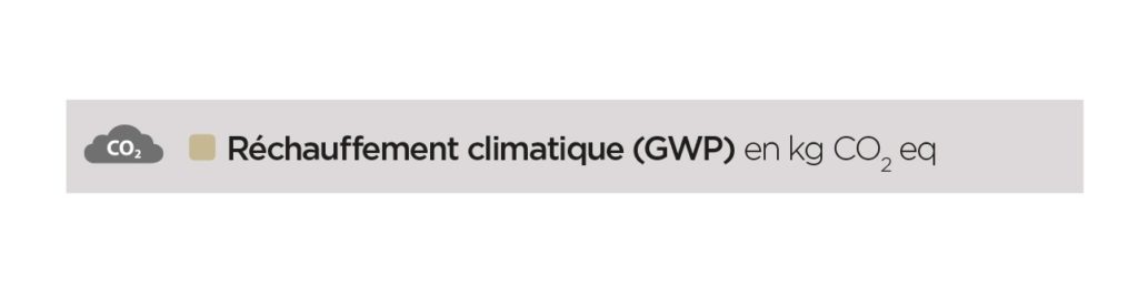 L’indicateur Réchauffement climatique (GWP) comptabilise les émissions de gaz contribuant à l’effet de serre tout au long du cycle de vie du produit. Il peut être aussi appelé l’indicateur « carbone » d’un produit. Son unité est le kg équivalent CO2, ce qui signifie qu’il inclut tous les gaz émetteurs : le dioxyde de carbone (CO2,), le méthane (CH4), les chlorofluorocarbures (CFC), le protoxyde d’azote (N2O), … Toutes ces valeurs (produits et équipements) sont nécessaires pour le calcul carbone à l’échelle bâtiment pour E+C- et demain la RE2020.